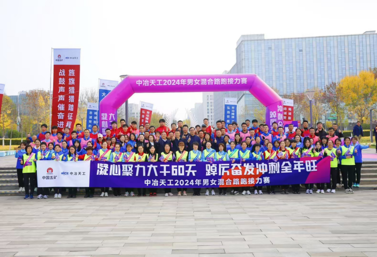 為積極響應(yīng)中國五礦“大干60天,沖刺全年旺”的號召,激發(fā)全體干部職工拼搏進(jìn)取、奮發(fā)有為的信心和斗志,增強(qiáng)團(tuán)隊強(qiáng)大合力,聚力齊發(fā),奮力沖刺年度目標(biāo)任務(wù),11月15日,中冶天工工會舉辦“凝心聚力大干60天,踔厲奮發(fā)沖刺全年旺”男女混合路跑接力賽,來自總部機(jī)關(guān)和二級單位的25支參賽代表隊100余人參加活動,公司黨委書記、董事長高文華出席活動并為接力賽鳴槍發(fā)令,公司黨委副書記文科出席活動并講話。