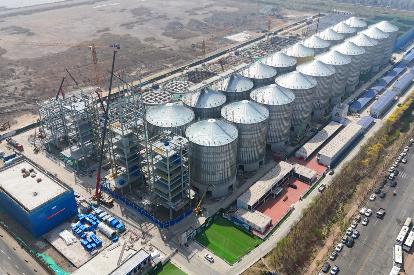 4月17日,天津有限公司臨港現代糧食物流產業園區糧食倉儲物流集散中心項目20座鋼筒倉主體完工,標志著項目建設取得里程碑式突破,正式邁入沖刺階段。