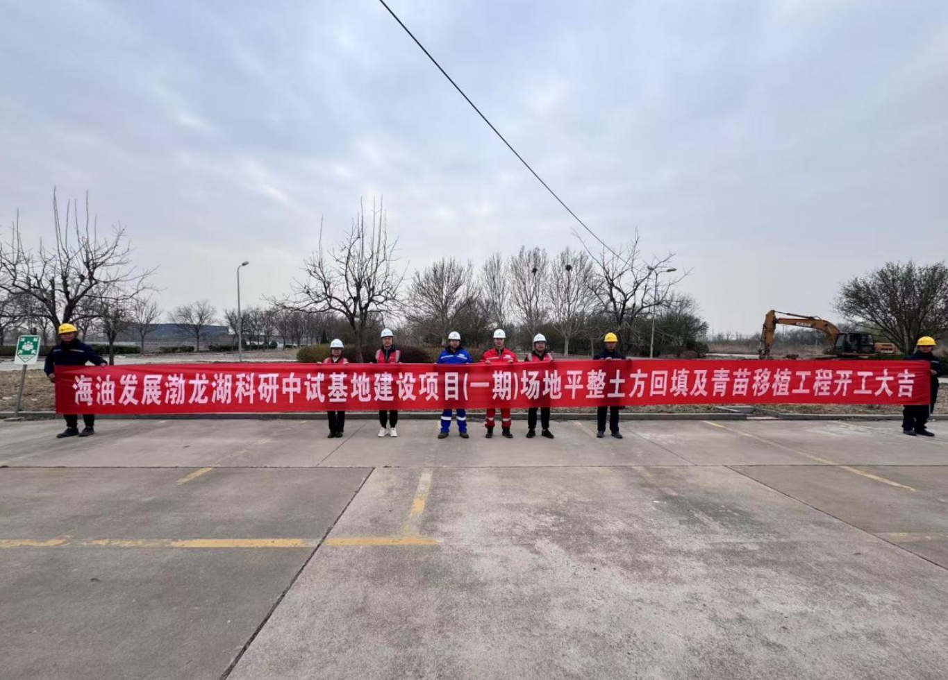 4月21日,由城建公司承建的海油發(fā)展渤龍湖科研中試基地建設(shè)項目(一期)場地平整土方回填及青苗移植工程正式開工。