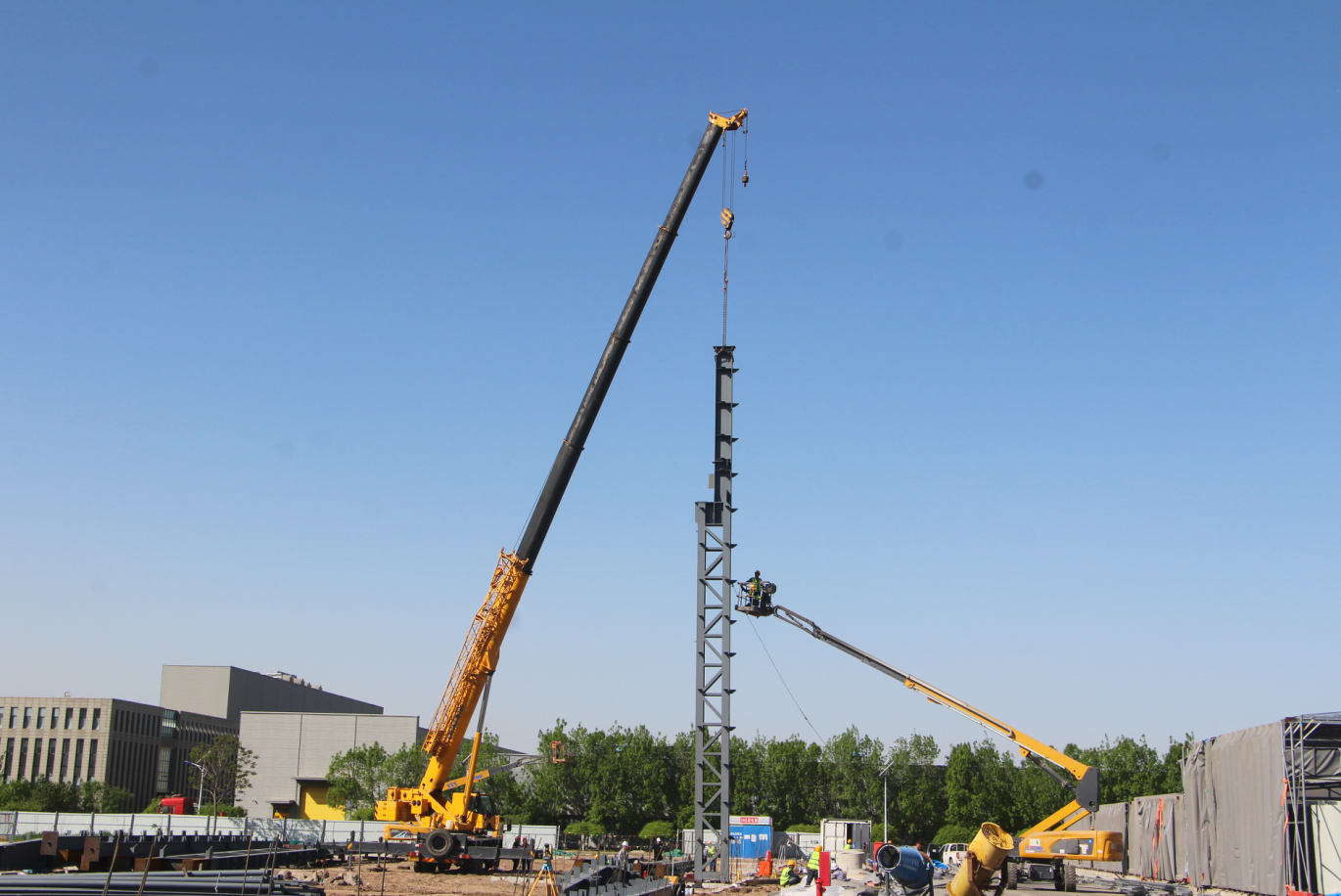 首吊啟動(dòng)前,項(xiàng)目部以“零隱患、零誤差”為準(zhǔn)則,制定科學(xué)合理、切實(shí)可行的施工方案,組織專業(yè)技術(shù)人員反復(fù)研討、優(yōu)化,并嚴(yán)格檢查、調(diào)試施工機(jī)械設(shè)備,為鋼結(jié)構(gòu)吊裝安全、精準(zhǔn)落位提供了全面保障。施工過程中,項(xiàng)目部針對(duì)吊裝作業(yè)技術(shù)要點(diǎn)與安全注意事項(xiàng)展開詳細(xì)交底,并安排專人進(jìn)行旁站監(jiān)督,全方位全過程深度管理、嚴(yán)格把關(guān),切實(shí)加強(qiáng)施工全過程安全管控,最終確保首吊順利完成、一次成優(yōu)。