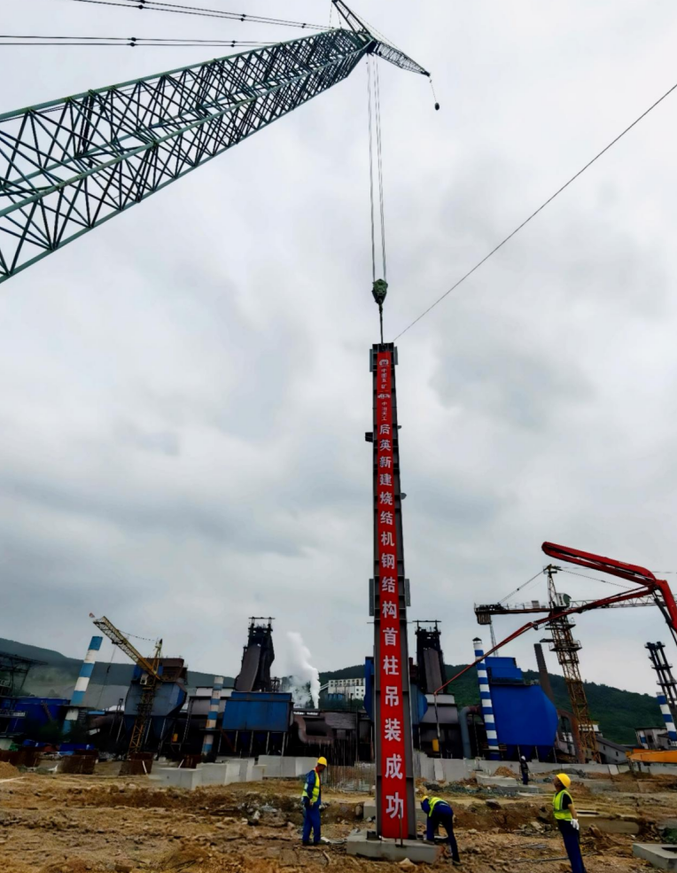 7月5日,工業工程公司后英鋼鐵有限公司新建220平方米燒結機項目迎來關鍵性進展——燒結機主廠房首根鋼柱完成吊裝就位,標志著該項目正式從基礎施工階段進入鋼結構安裝階段,為后續施工推進奠定了堅實基礎。