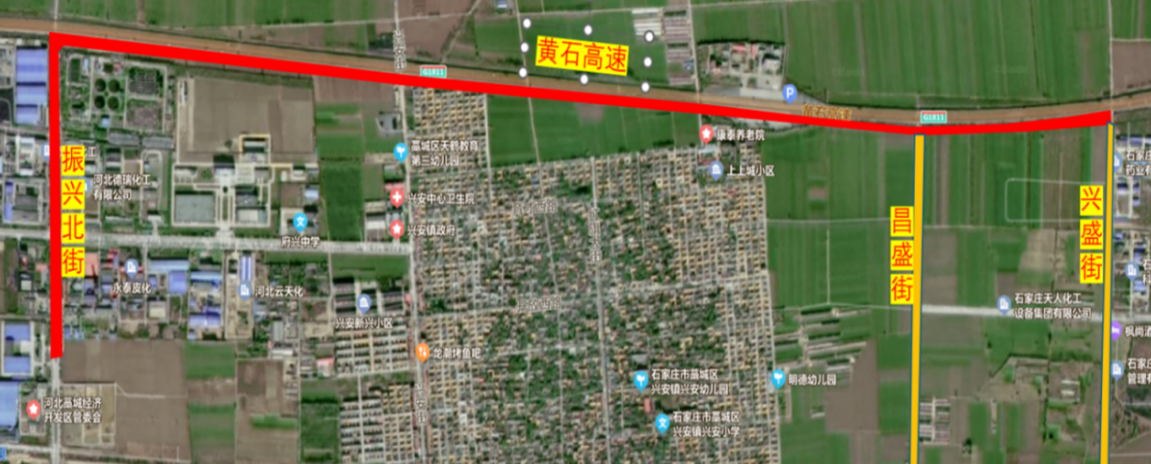 藁城電力排管項目起點位于市府東路和振興北街西南側的110kV變電所,終點位于市府路和昌盛街西北側的10kV開閉所以及市府路和興盛街西北側的10kV開閉所。