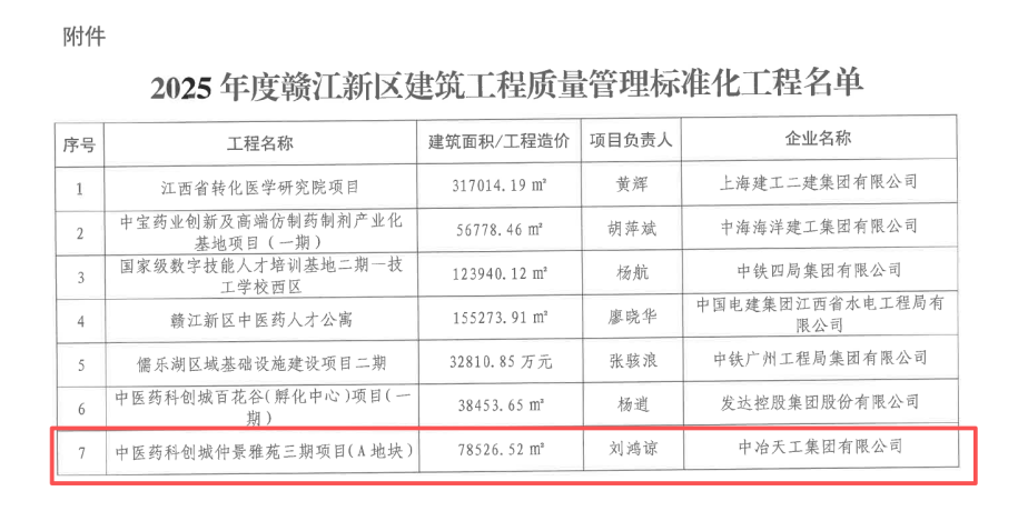 近日,在江西省南昌市贛江新區(qū)組織的區(qū)域工程質(zhì)量評優(yōu)活動中,華南公司承建的中醫(yī)藥科創(chuàng)城項目憑借過硬的工程質(zhì)量和精細化的管理水平,榮獲“贛江新區(qū)建筑工程質(zhì)量管理標準化工程”獎項。