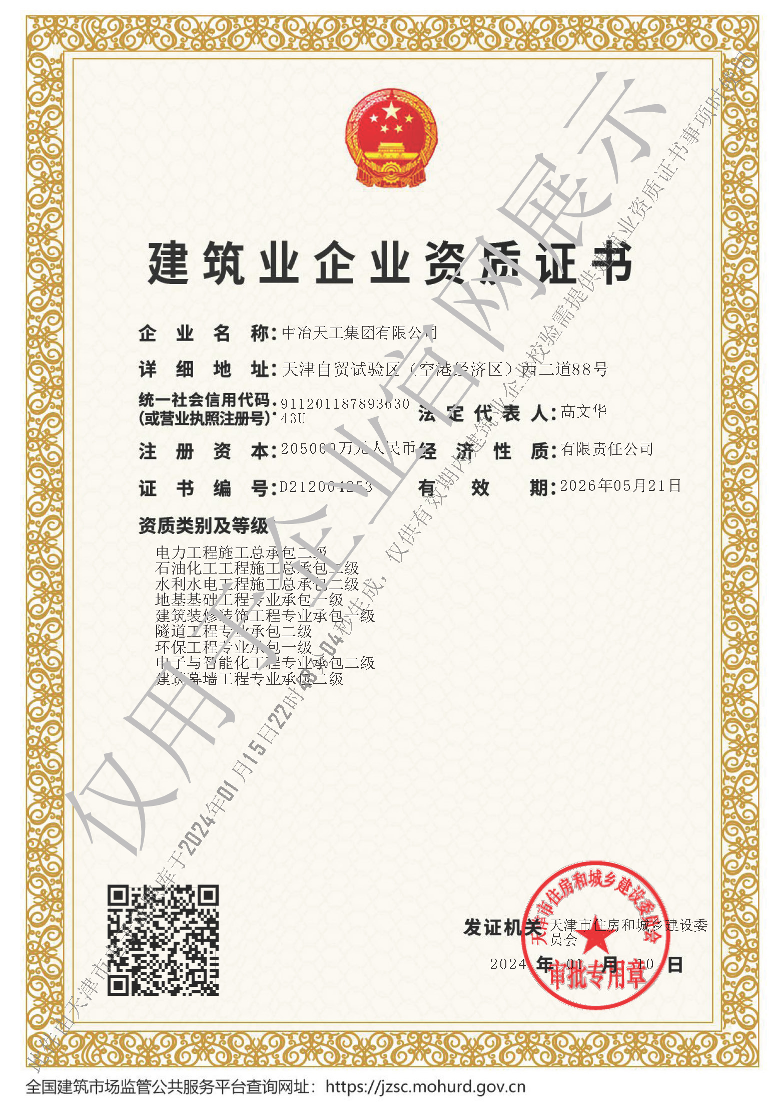 建筑业企业资质证书-天津市建委核准
